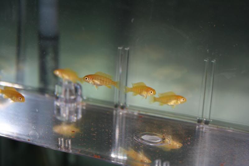 I'm gonna keep a little diary here to keep track of their growth from very young fry to adults and hopefully through breeding. I think it should be interesting. I'm hoping to take pics on a weekly basis with the occasional video as well. Starting out with 8 fish at approximately .5" in size. They are about 1 week old (post spit).