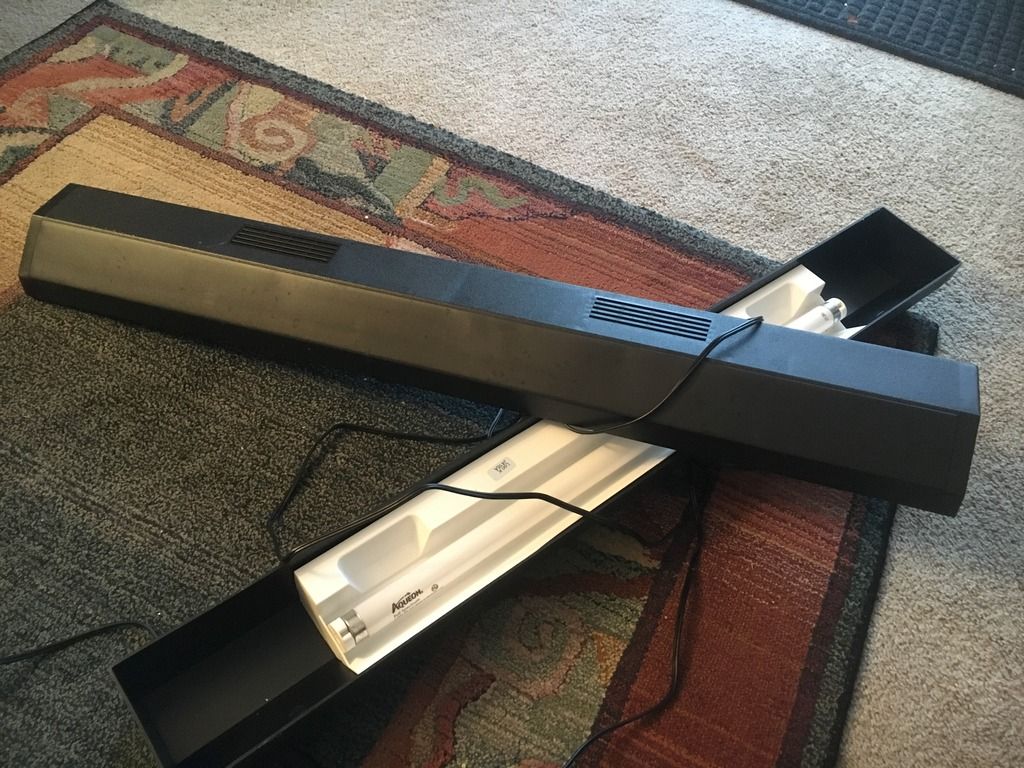 I have two nearly new Aqueon standard 36" light assemblies. Asking $15 each. I used them for a week brand new and bought one large light to replace them. Brand new before one week's use.