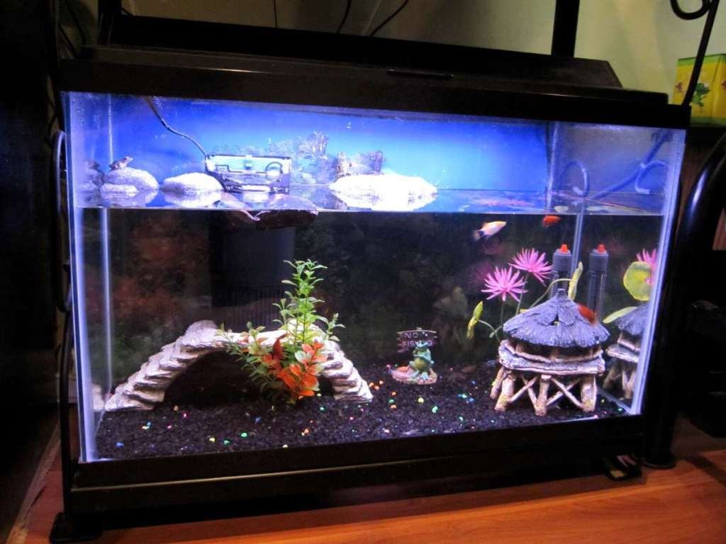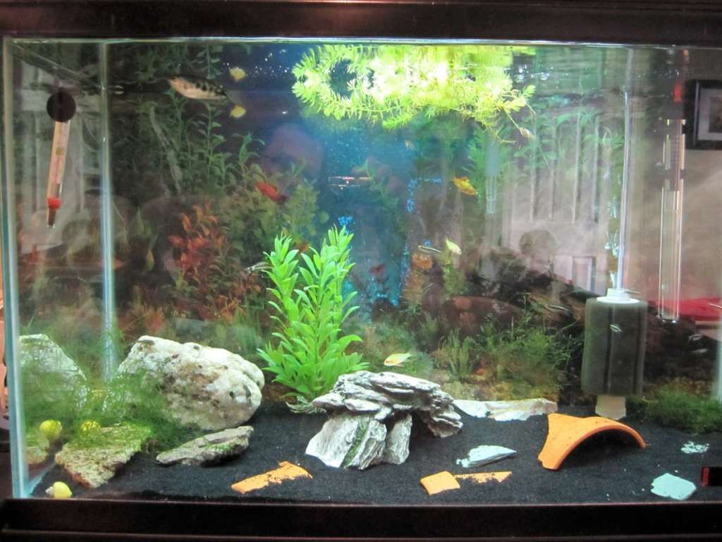 29 mixed with fire belly toads (in the upper third) and a harem of platies (1M 4F) in the 20 gallons below