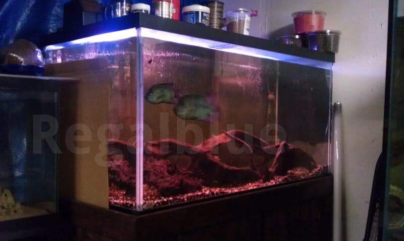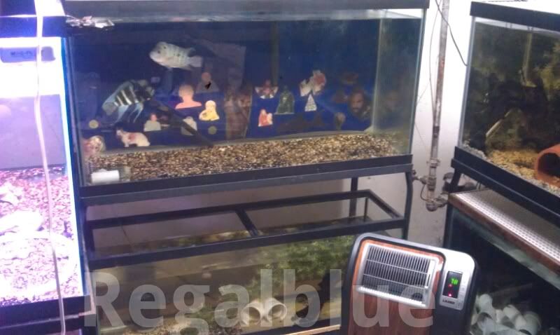 35- Flowerhorn from my ZZ/ Parrot pair.  40B#1- T.Pasionsis group & Severum growouts.  40B#2- Small H.Bartoni pair (not proven) 20long - divided with a 2" Silk Flowerhorn on each side