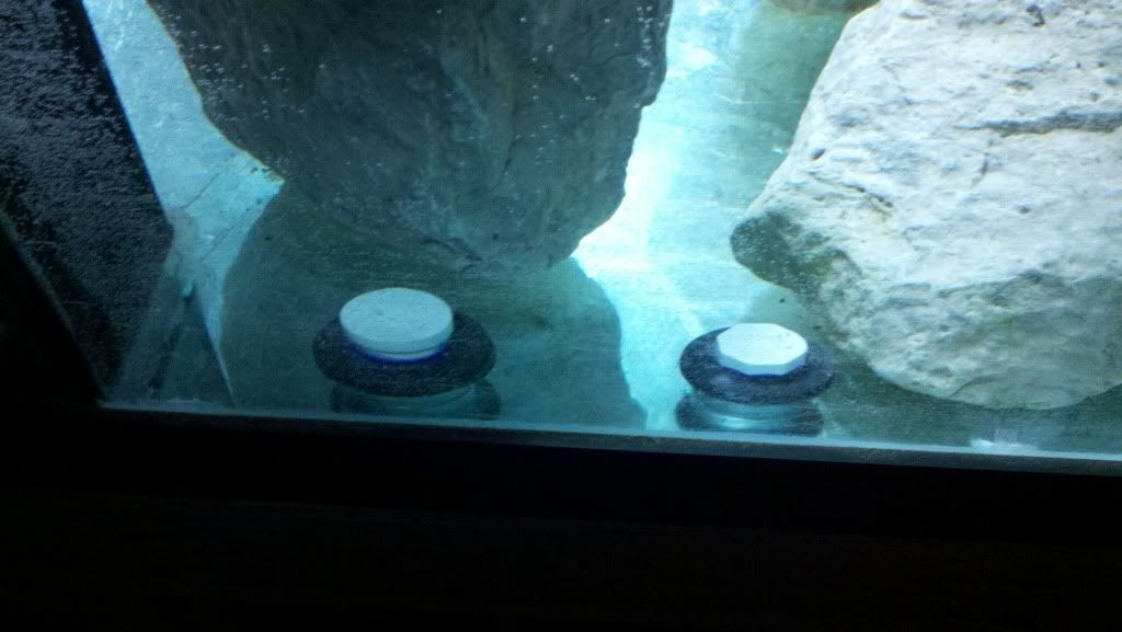 So, plumbing was basically ready, time to put in the rocks and sand starting with the rocks. I got my brother-in-law over to help me lower some massive rocks into the tank, got the rocks in was moving them around and....crash.....my heart sank. The file that I had used on the acrylic and had foolishly set on one of the cross braces and forgotten, dropped onto the bottom of the tank and chipped it. It was a small chip, but it seemed a bit deep and wasn't smooth. I didn't know what to do...time to hit the forums. Got some advice, bought a dremel, ground out the chip, filled it with epoxy, siliconed some glass over the patch, finished moving my rocks and went to leak test...after a stressful hour of filling, the repaired tank passed the leak test and it was time to get the filter running for a test of that system. It kind of worked, there were several adjustments that needed to be made.