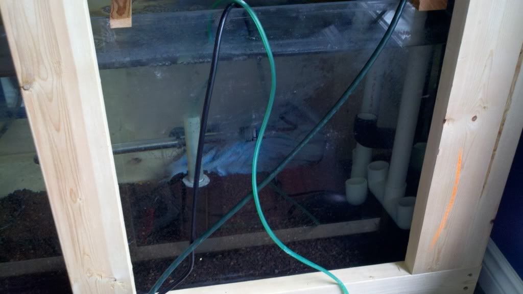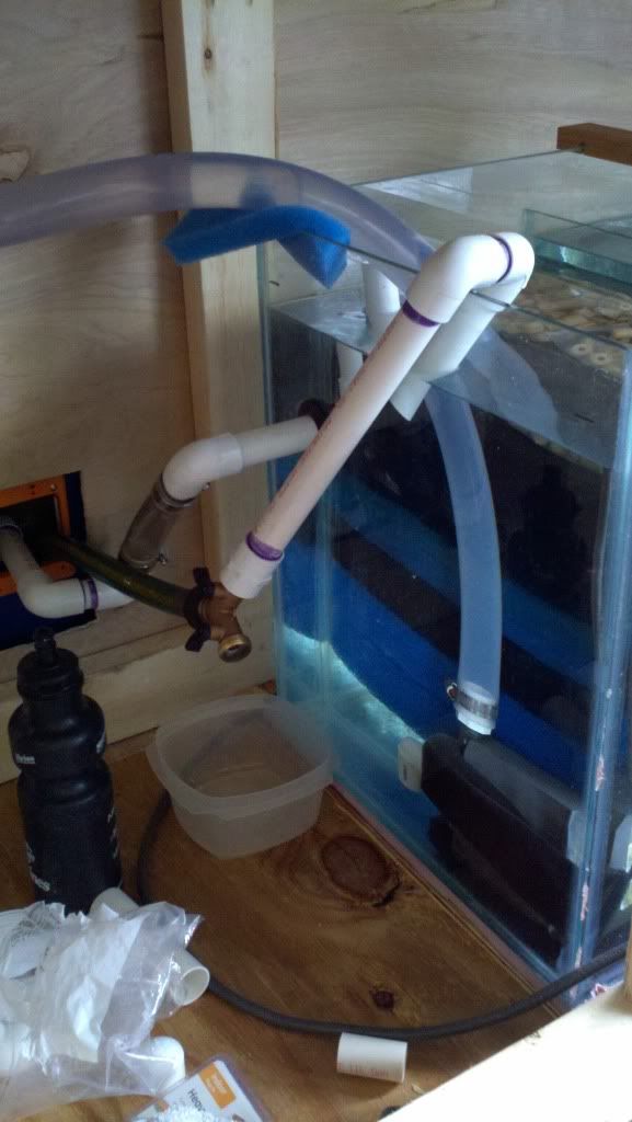 I was going to run a herbie/bean animal type setup for a quiet, high flow filtration. But, the full siphon in one overflow wasn't doing the job and the other overflow with the intended trickle drain was drawing some serious amount of water and a lot of noise. New plan, two full siphon drains, one in each overflow, no trickle drain and a backup drain that if required would be heard through the whole house. It works. It's very quiet, some air bubble noise due to some turbulence at the gate valves but the stand isn't even skinned, that noise should disappear when I skin the stand.
