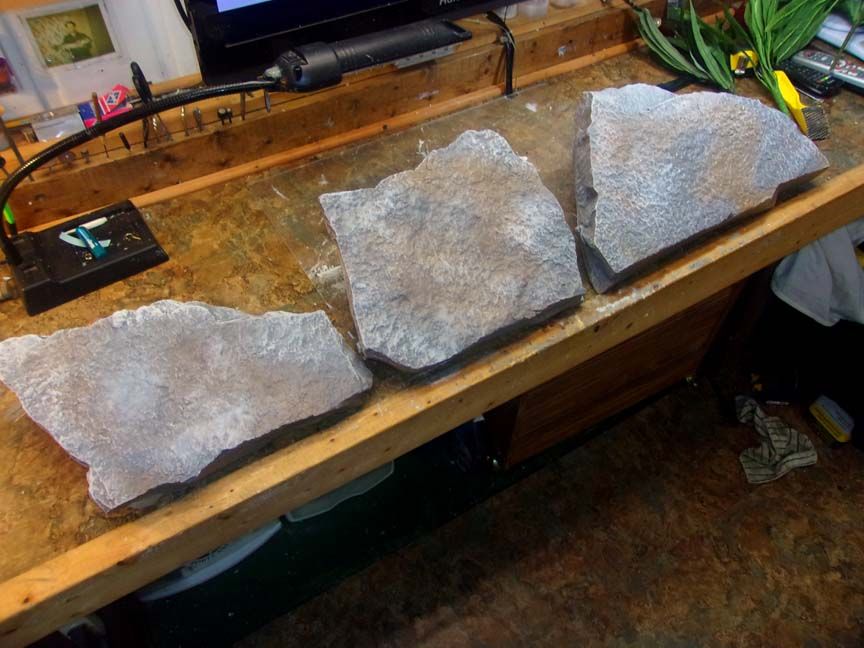 Nice work mate...I have even thought about colring and sealing rock for a perfect match...genius...the sealer darkened up the background quite a bit hey...are you gonna make caves with the slate or just have the pieces sit upright for a nice open look?