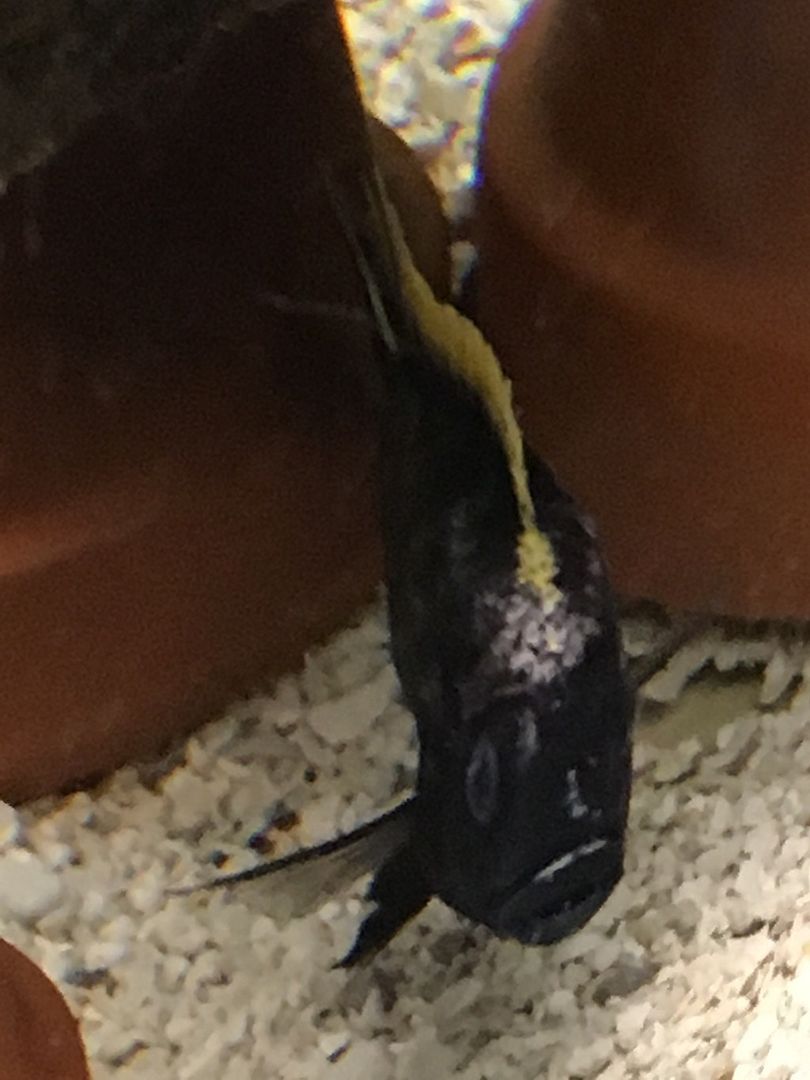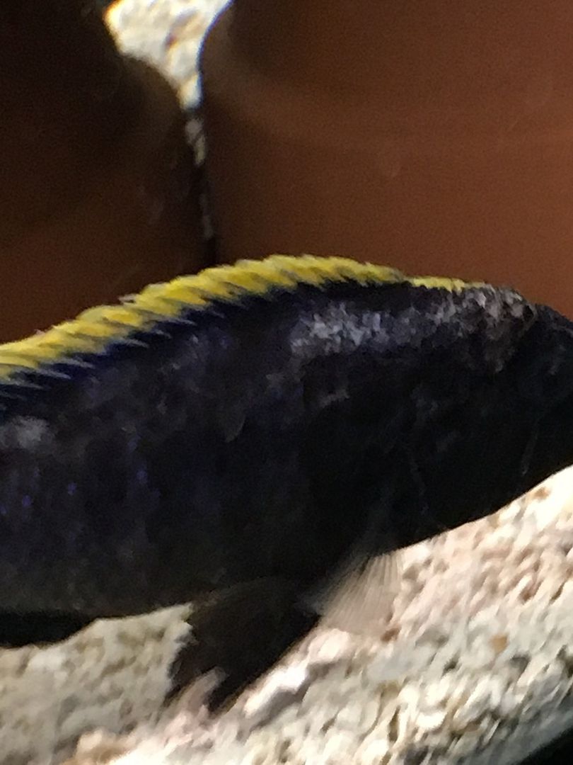 He died. I should have kept the light on for him overnight. Seems like the dark can just make a severely distressed fish spin out. And also I am not 100% sold on Melafix being snake oil. Tea Tree oil does have healing and helpful properties and that is one of it's ingredients. If it does all it claims maybe not. Anyway he was a beaute. I just took him out of the Mbuna tank as I saw he was isolating himself. I had another male that got beat up and then died from being in there. I always thought it was an Afra male or the Lithobates male that did it. So I moved the OB Peacock along with him to keep him from harassing the one Lithobates female. Well turns out I had the perpetrator right in the tank with him. Damn.